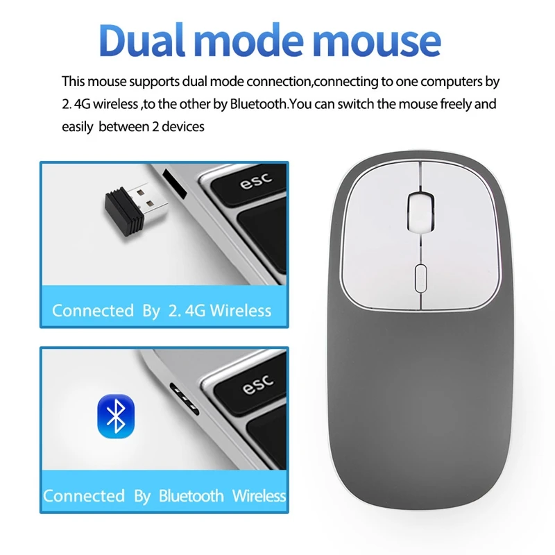 Metal Bluetooth and 2.4G Wireless Mouse Alloy Ultra-Thin Recharge Portable Ergonomic Mice for Mac P