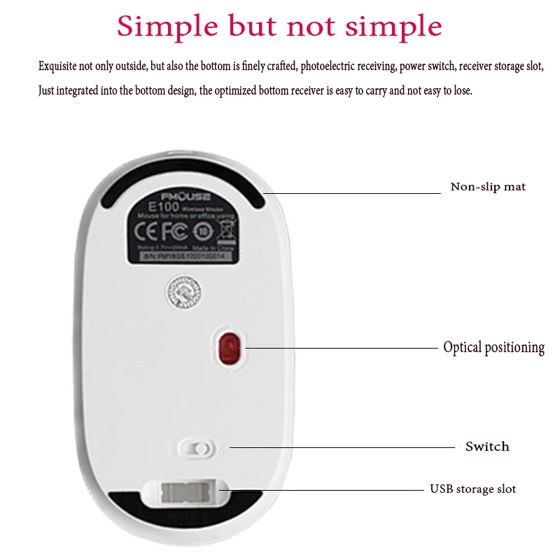 Slient Rechargeable Wireless Mouse 1600DPI Portable 2.4G USB Built-in wireless ultra Slim Silent mi