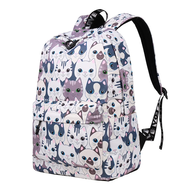 HOT SALE Waterproof Cat Printing Backpack Women School Students Back Pack Female 14-15.6 Inch Laptop Cute Bo
