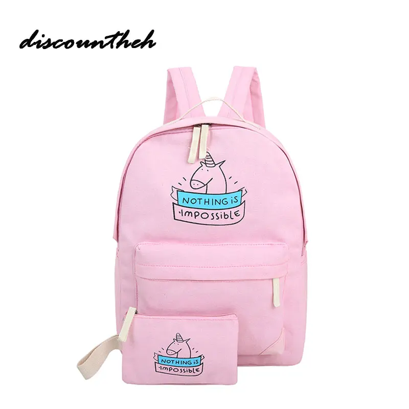 Women Canvas Backpack Fashion Cute Travel Bags Animal Printing Backpack 2pcs/set New Laptop Backpac